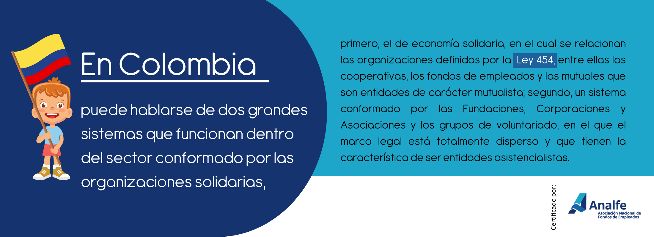Las organizaciones de la economía solidaria son aquellas que cumplen con las características principios y fines contemplados en la ley 454 de 1998, siendo hoy: