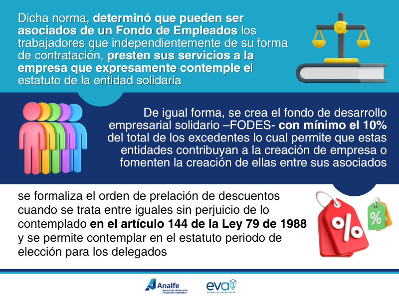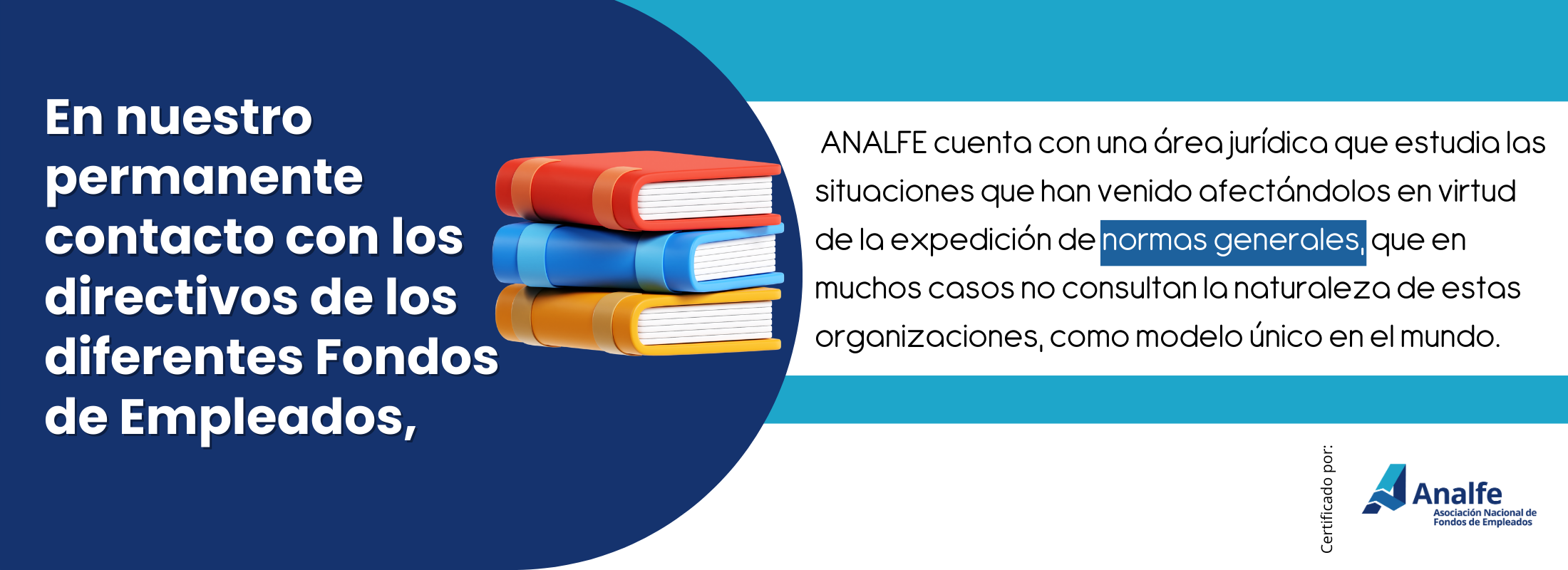 Dentro de las necesidades más latentes, estaba la revisión del vínculo de asociación, pues los movimientos normativos frente a las diferentes formas de contratación laboral que se venían adoptando en las empresas y las que se preveían iban a entrar en vigencia generaban incertidumbre frente a la redacción que traía el artículo 4 del Decreto Ley 1481 de 1989 donde limitaba la participación para ser asociados a los trabajadores dependientes. Ante esta situación, ANALFE lidera el proceso de análisis y de redacción de un proyecto de ley, dentro del cual se incluyen otros aspectos de interés para estas entidades y que se formaliza a través de la Ley 1391 de 2010.