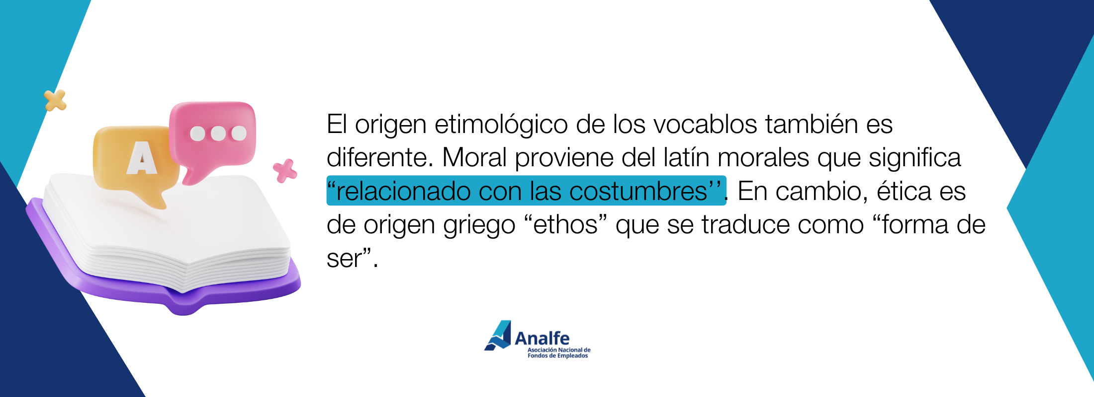 Generalmente la ética tiende a confundirse con la moral, no obstante, su significado es diferente. De un lado, la moral conforma el marco básico en un nivel práctico del comportamiento personal, influyendo en las normas de conducta de las personas. Mientras que la ética, versa su estudio conceptual sobre los valores morales, no desde el punto de vista de su génesis sino desde el modo de actuar de las personas ante la sociedad.